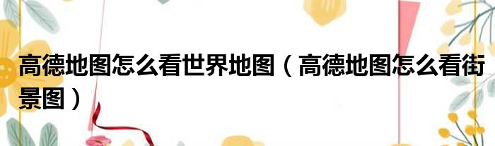 高德地图怎么看世界地图(高德地图怎么看街景图)