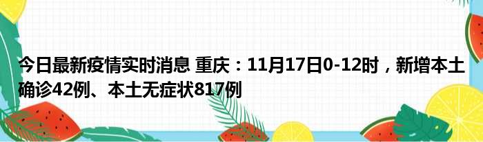 今日最新疫情实时消息 重庆:11月17日0-12时,新增本土确诊42例、本土无症状817例