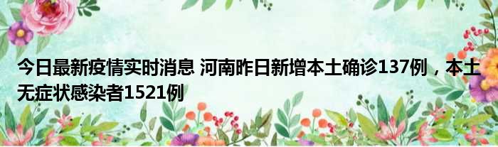 您的位置:首页 >房产频道 > 综合精选 > 今日最新疫情实时消息 河南昨日新增本土确诊137例,本土无症状感染者1521例 2022-12-07 15:50:15 • 来源: 导读 免责声明:本文由用户上传,如有侵权请联系删除! 上一篇:精准规范网点管理(精准规律公式) 下一篇:哪些网贷平台不需要还(哪些网贷平台被封)