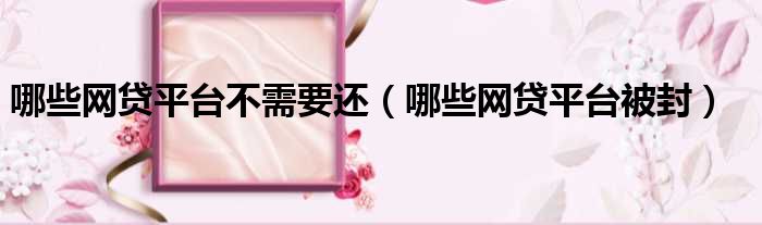 导读 大家好,今天小六子来为大家解答以下的问题,关于哪些网贷平台不需要还,哪些网贷平台被封这个很多人还不知道,现在让我们一起来看看吧!1、