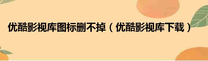 导读 大家好,今天小六子来为大家解答以下的问题,关于优酷影视库图标删不掉,优酷影视库下载这个很多人还不知道,现在让我们一起来看看吧!1、流