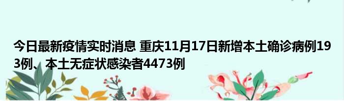 今日最新疫情实时消息 重庆11月17日新增本土确诊病例193例、本土无症状感染者4473例