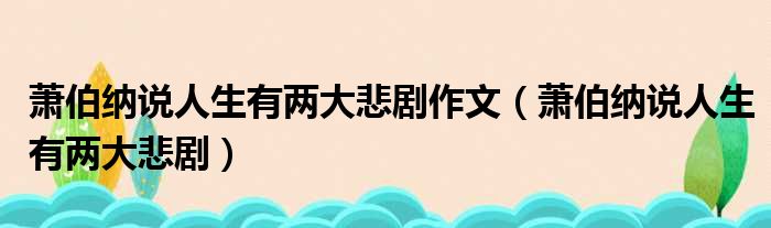 萧伯纳说人生有两大悲剧作文(萧伯纳说人生有两大悲剧)