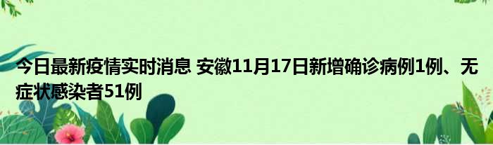 今日最新疫情实时消息 安徽11月17日新增确诊病例1例、无症状感染者51例
