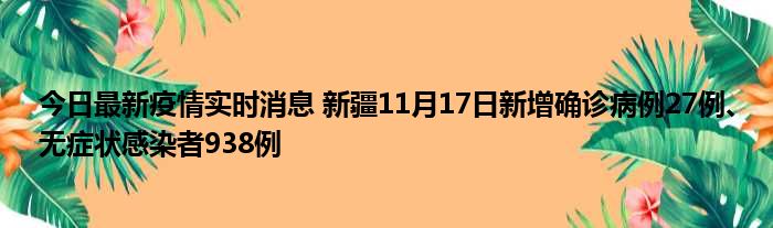 新疆卫健委通报,11月17日0时至24时,新疆维吾尔自治区新增确诊病例27例,新增无症状感染者938例,新增确诊病例治愈出院8例,新增无症状