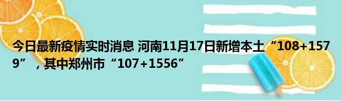 今日最新疫情实时消息 河南11月17日新增本土“108+1579”,其中郑州市“107+1556”