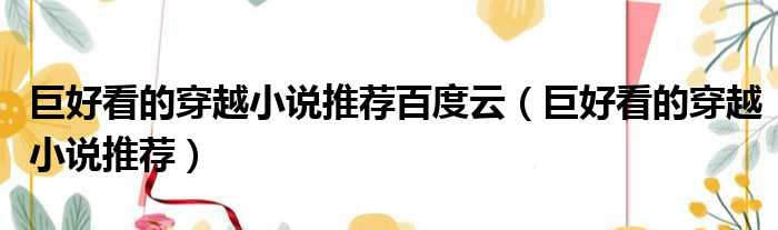 巨好看的穿越小说推荐百度云(巨好看的穿越小说推荐)