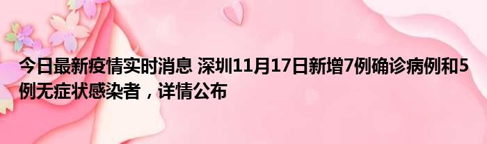 深圳卫健委通报,11月17日0-24时,深圳新增7例新冠肺炎确诊病例和5例新冠病毒无症状感染者
