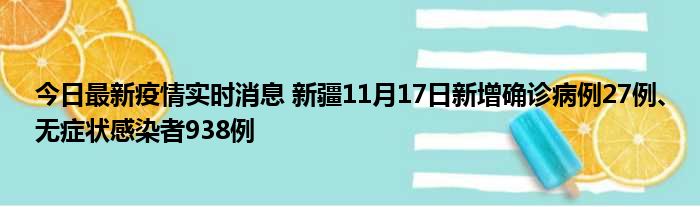 新疆卫健委通报,11月17日0时至24时,新疆维吾尔自治区新增确诊病例27例,新增无症状感染者938例,新增确诊病例治愈出院8例,新增无症状