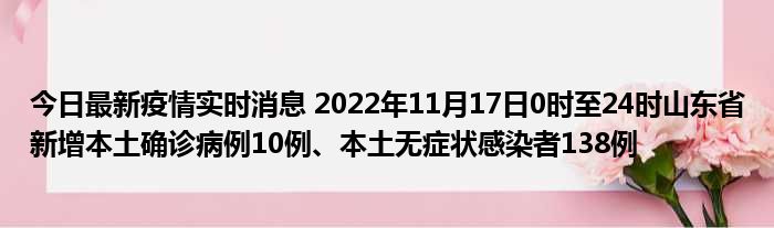 您的位置:首页 >房产频道 > 综合精选 > 今日最新疫情实时消息 2022年11月17日0时至24时山东省新增本土确诊病例10例、本土无症状感染者138例 2022-12-08 00:32:16 • 来源: 导读 免责声明:本文由用户上传,如有侵权请联系删除! 上一篇:库里资料身高体重(库里资料) 下一篇:曲风类型有哪些(曲风)