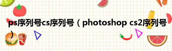 导读 大家好,今天小六子来为大家解答以下的问题,关于ps序列号cs序列号,photoshop cs2序列号这个很多人还不知道,现在让我们一起来看看吧!1、