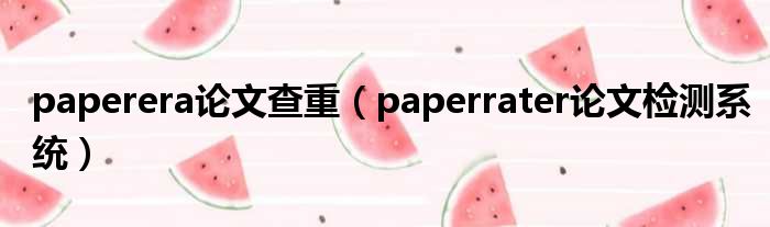 paperera论文查重(paperrater论文检测系统)