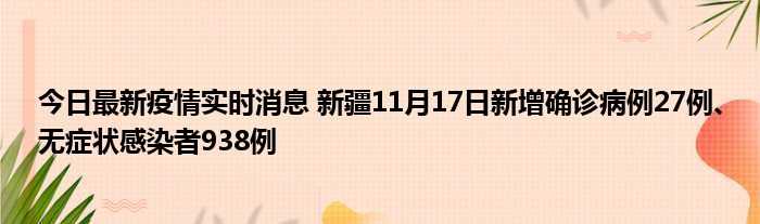 新疆卫健委通报,11月17日0时至24时,新疆维吾尔自治区新增确诊病例27例,新增无症状感染者938例,新增确诊病例治愈出院8例,新增无症状