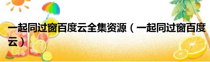 一起同过窗百度云全集资源(一起同过窗百度云)