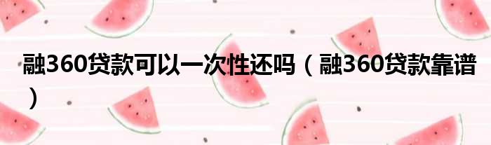 融360贷款可以一次性还吗(融360贷款靠谱)