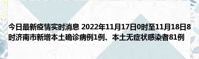 您的位置:首页 >房产频道 > 综合精选 > 今日最新疫情实时消息 2022年11月17日0时至11月18日8时济南市新增本土确诊病例1例、本土无症状感染者81例 2022-12-08 05:20:12 • 来源: 导读 免责声明:本文由用户上传,如有侵权请联系删除! 上一篇:麻疹的症状和治疗偏方(麻疹的症状和治疗) 下一篇:工藤静香毁容?(工藤静香怎么毁容的)