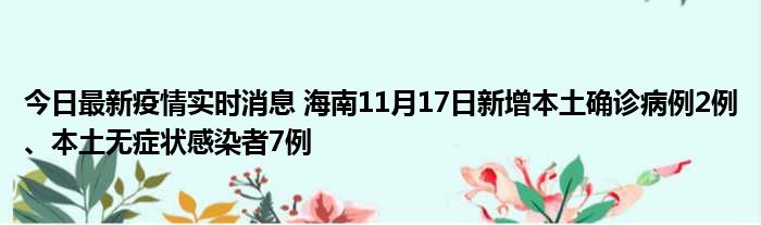 今日最新疫情实时消息 海南11月17日新增本土确诊病例2例、本土无症状感染者7例