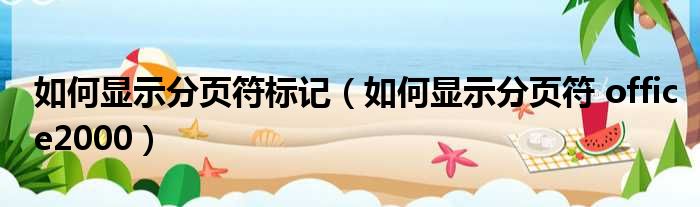 导读 大家好,今天小六子来为大家解答以下的问题,关于如何显示分页符标记,如何显示分页符 office2000这个很多人还不知道,现在让我们一起来看