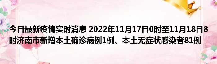 您的位置:首页 >房产频道 > 综合精选 > 今日最新疫情实时消息 2022年11月17日0时至11月18日8时济南市新增本土确诊病例1例、本土无症状感染者81例 2022-12-08 09:00:16 • 来源: 导读 免责声明:本文由用户上传,如有侵权请联系删除! 上一篇:小妹子爱追剧(小妹子aiuu2) 下一篇:今日最新疫情实时消息 江苏11月17日新增本土确诊病例21例、本土无症状感染者121例