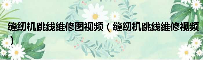 缝纫机跳线维修图视频(缝纫机跳线维修视频)
