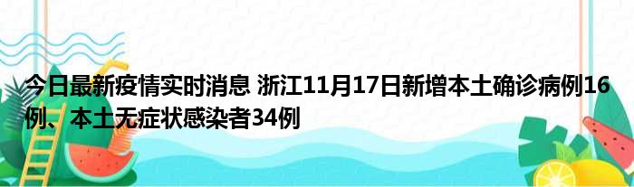 今日最新疫情实时消息 浙江11月17日新增本土确诊病例16例、本土无症状感染者34例
