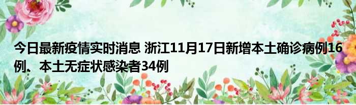 今日最新疫情实时消息 浙江11月17日新增本土确诊病例16例、本土无症状感染者34例