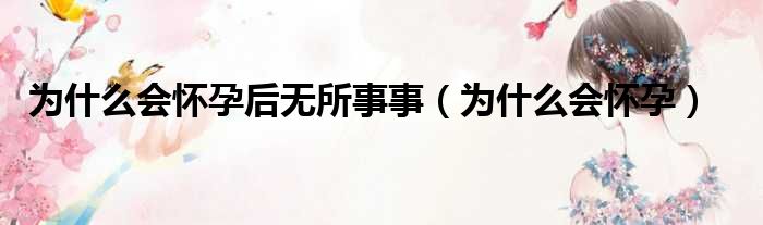 大家好,今天小六子来为大家解答以下的问题,关于为什么会怀孕后无所事事,为什么会怀孕这个很多人还不知道,现在让我们一起来看看吧!