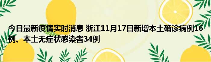 今日最新疫情实时消息 浙江11月17日新增本土确诊病例16例、本土无症状感染者34例