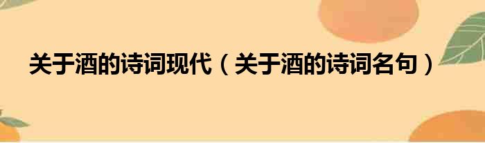关于酒的诗词现代(关于酒的诗词名句)