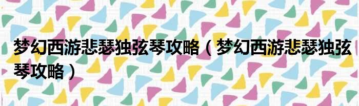 梦幻西游悲瑟独弦琴攻略(梦幻西游悲瑟独弦琴攻略)