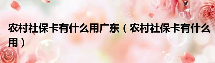 农村社保卡有什么用广东(农村社保卡有什么用)