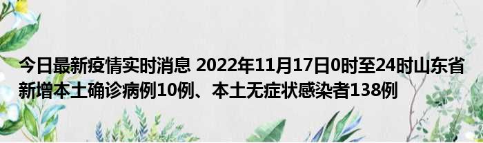 您的位置:首页 >房产频道 > 综合精选 > 今日最新疫情实时消息 2022年11月17日0时至24时山东省新增本土确诊病例10例、本土无症状感染者138例 2022-12-08 17:38:14 • 来源: 导读 免责声明:本文由用户上传,如有侵权请联系删除! 上一篇:u开头的英语单词小学(u开头的英语单词) 下一篇:区块链的基本含义(区块链的含义)