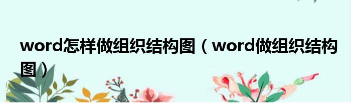 word怎样做组织结构图(word做组织结构图)