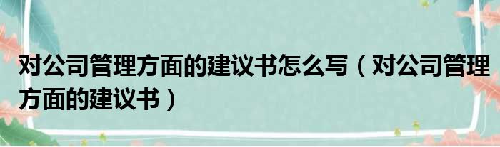 对公司管理方面的建议书怎么写(对公司管理方面的建议书)