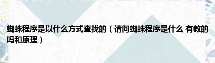 蜘蛛程序是以什么方式查找的(请问蜘蛛程序是什么 有教的吗和原理)
