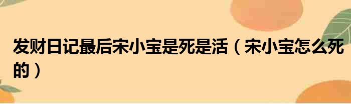 发财日记最后宋小宝是死是活(宋小宝怎么死的)