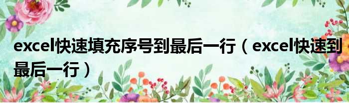 excel快速填充序号到最后一行(excel快速到最后一行)