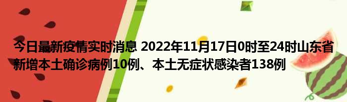 您的位置:首页 >房产频道 > 综合精选 > 今日最新疫情实时消息 2022年11月17日0时至24时山东省新增本土确诊病例10例、本土无症状感染者138例 2022-12-12 15:58:19 • 来源: 导读 免责声明:本文由用户上传,如有侵权请联系删除! 上一篇:企业向企业借款的账务处理(企业之间借款账务处理) 下一篇:今日最新疫情实时消息 新疆乌鲁木齐市新增确诊病例18例、无症状感染者505例