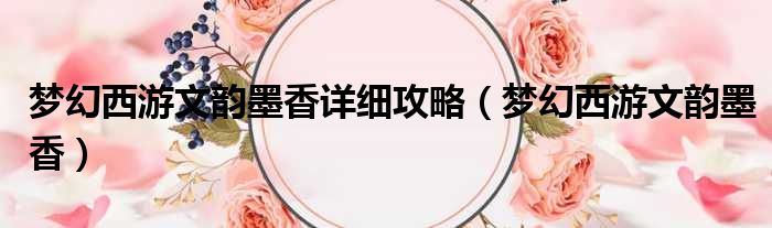 梦幻西游文韵墨香详细攻略(梦幻西游文韵墨香)