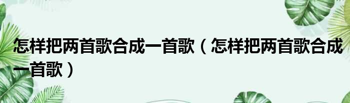 怎样把两首歌合成一首歌(怎样把两首歌合成一首歌)