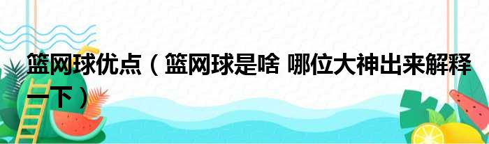 篮网球优点(篮网球是啥 哪位大神出来解释一下)