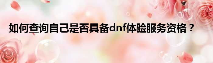 导读 大家好,今天小六子来为大家解答以下的问题,关于如何查询自己是否具备dnf体验服务资格?这个很多人还不知道,现在让我们一起来看看吧!1、