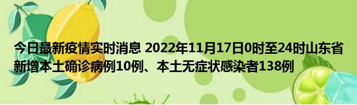 您的位置:首页 >房产频道 > 综合精选 > 今日最新疫情实时消息 2022年11月17日0时至24时山东省新增本土确诊病例10例、本土无症状感染者138例 2022-12-13 01:20:15 • 来源: 导读 免责声明:本文由用户上传,如有侵权请联系删除! 上一篇:兽医专业自考(兽医专业自考) 下一篇:今日最新疫情实时消息 新疆乌鲁木齐市新增确诊病例18例、无症状感染者505例
