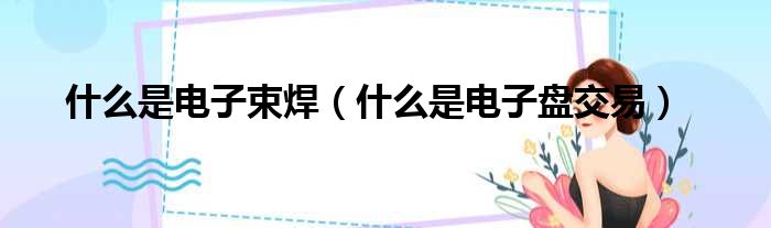 导读 大家好,今天小六子来为大家解答以下的问题,关于什么是电子束焊,什么是电子盘交易这个很多人还不知道,现在让我们一起来看看吧!1、电子盘