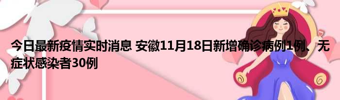 今日最新疫情实时消息 安徽11月18日新增确诊病例1例、无症状感染者30例