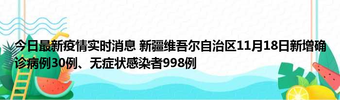 今日最新疫情实时消息 新疆维吾尔自治区11月18日新增确诊病例30例、无症状感染者998例