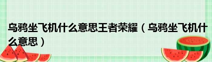乌鸦坐飞机什么意思王者荣耀(乌鸦坐飞机什么意思)