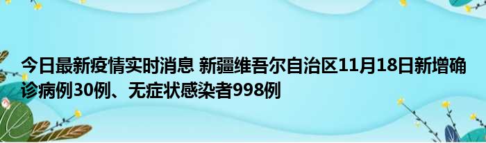 新疆卫健委通报,11月18日0时至24时,新疆维吾尔自治区新增确诊病例30例,新增无症状感染者998例,新增确诊病例治愈出院13例,新增无症状