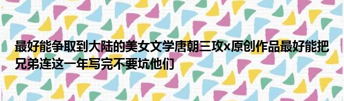 大家好,今天小六子来为大家解答以下的问题,关于最好能争取到大陆的美女文学唐朝三攻x原创作品最好能把兄弟连这一年写完不要坑他们这个很多人还不知道,现在让我们一起来看看吧!