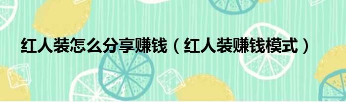 红人装怎么分享赚钱(红人装赚钱模式)